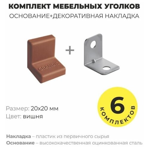 Уголок мебельный крепежный, 20*20 мм, с пластиковой крышкой, Grandis , цвет вишня, комплект 12 шт