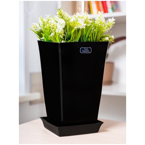 Вазон на поддоне квадратный чёрный 12х12х19.7, GI-A-10, AIKA