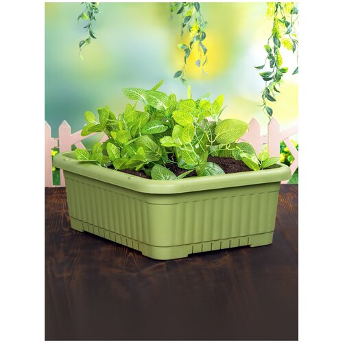 Вазон зелёный прямоугольный 50х40х18 см, A-101251, AIKA