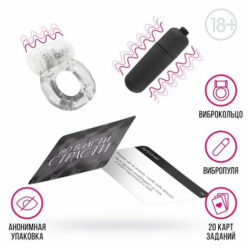 Виброкольцо и вибропуля в наборе для двоих «Во власти страсти», 3 в 1 (20 карт, виброкольцо, вибропуля), 18+