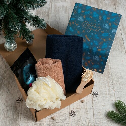 Подарочный набор полотенец "С Новым Годом", полотенце 50х90 см, 30х60 см и аксессуары (5 предметов)