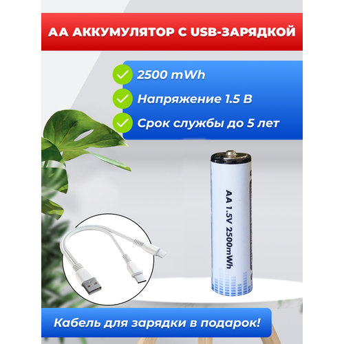 АА Аккумулятор с USB-зарядкой, 2500mWh 1.5В