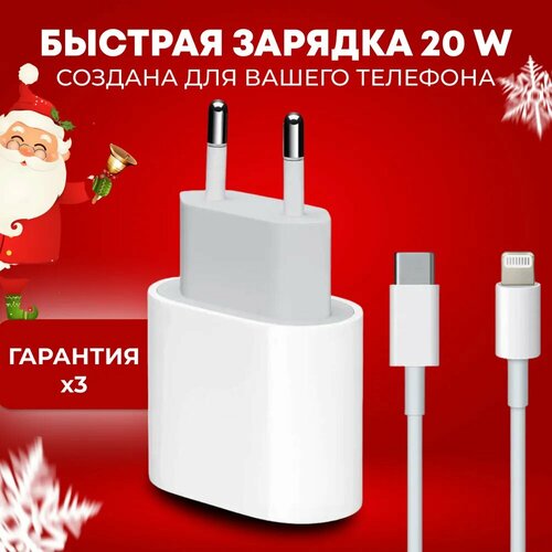 Быстрая зарядка для телефона 20W / Кабель Type C-Lightning в комплекте / Белый