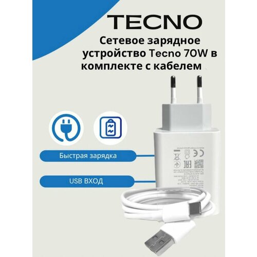 Сетевое зарядное устройство для Tecno/ Infinix 70W ( U700TEA) в комплекте с кабелем 5А/Быстрая зарядка.