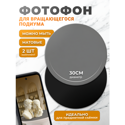 Фотофон для поворотного столика 30 см / 2 ш, серый и чёрный / фон для вращающегося подиума и предметной съёмки