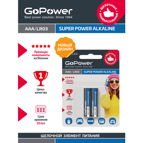 Батарейка GoPower LR03 AAA BL2 Alkaline 1.5V