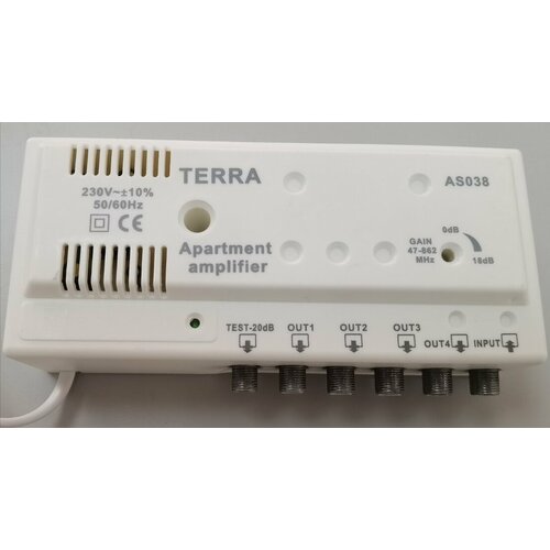 Усилитель телевизионный квартирный TERRA AS038 с 4-мя выходами , на 4-е телевизора