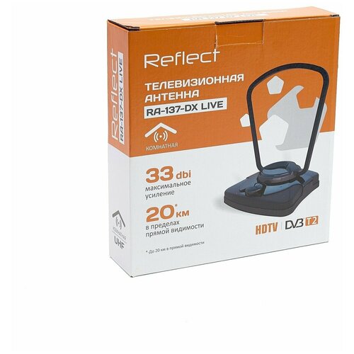 Антенна комнатная Reflect LIVE RA-137-DX (активная, 5V, ДМВ, с б/п, 33 дБи, коробка)