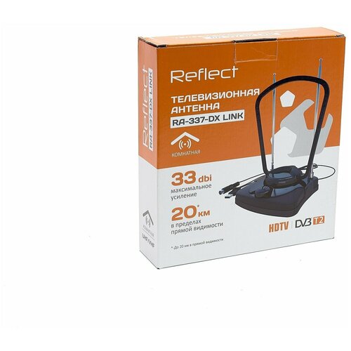 Антенна комнатная Reflect LINK RA-337-DX (активная, МВ-ДМВ, с б/п, 33 дБи, коробка)