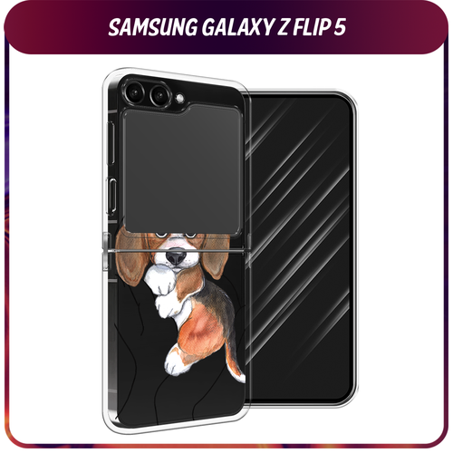 Чехол на Samsung Galaxy Z Flip 5 / Самсунг Z Flip 5 с принтом Бигль в ладошках, прозрачный