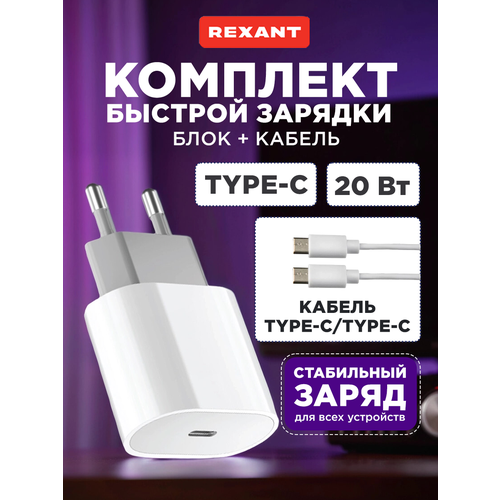 Сетевое зарядное устройство USB-C, 20Вт в комплекте с кабелем REXANT