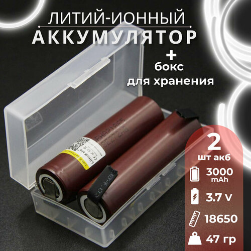 Аккумулятор Li-Ion 2900mAh 3.7 В LiitoKala HG2 18650 высокотоковый незащищенный с выводами + кейс для хранения, в упаковке: 2 шт.
