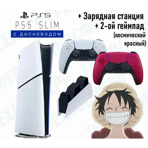 Sony PlayStation 5 Slim, с дисководом, + 2й , космический красный геймпад PS5 и зарядная станция