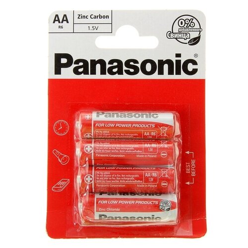 Батарейка солевая Panasonic Zinc Carbon, AA, R6-4BL, 1.5В, блистер, 4 шт./В упаковке шт: 1