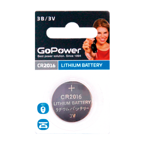 Батарейка GoPower CR2016 BL1 Lithium 3V