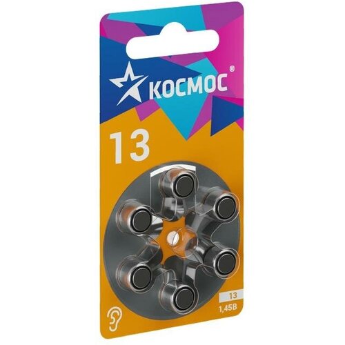 Батарейка воздушно-цинковая для слуховых аппаратов ZA13 (13 PR48 DA13 V13A) 1.45В (уп.6шт) | код. KOCZA-13BL6 | космос (3упак.)