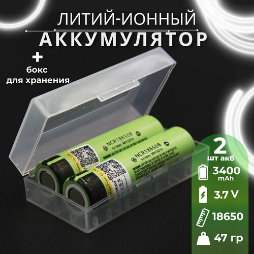 Аккумулятор LiitoKala 18650 Li-ion 3.7В 3400mAh до 10А незащищенный + кейс для хранения, 2 шт.