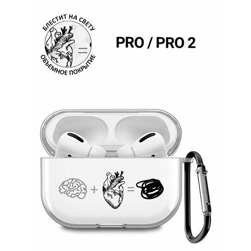 Прозрачный чехол для наушников Apple AirPods Pro / АирПодс Про силиконовый с 3D принтом "Brain Plus Heart"
