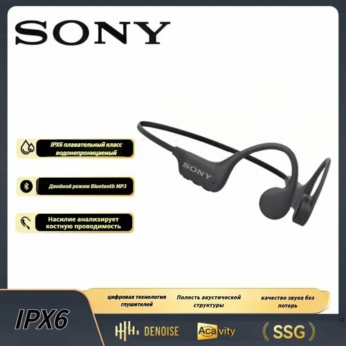 Sony Спортивная беспроводная гарнитура Bluetooth, костная проводимость, с микрофоном, IPX7, Черный