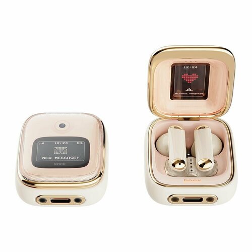 Беспроводные наушники ROCK Retro Style TWS Earphone Clamshell бежевые