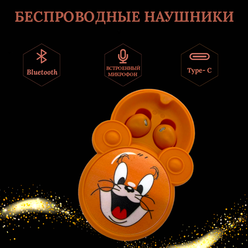 Детские беспроводные наушники, наушники Bluetooth вкладыши для детей с героями мультфильмов, Том и Джерри