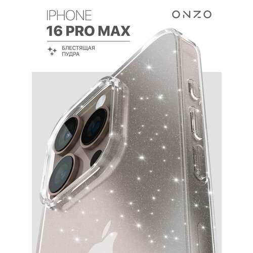 Блестящий чехол на iPhone 16 Pro Max / Айфон 16 Про Макс бампер тонкий, прозрачный