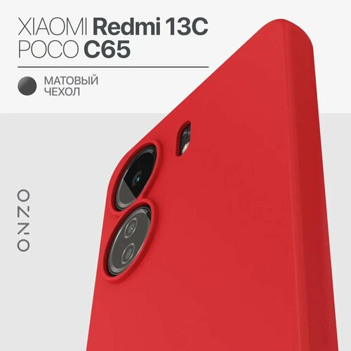 Матовый чехол для Xiaomi Redmi 13C, POCO C65 / Сяоми Редми 13С, Поко С65 бампер тонкий, красный