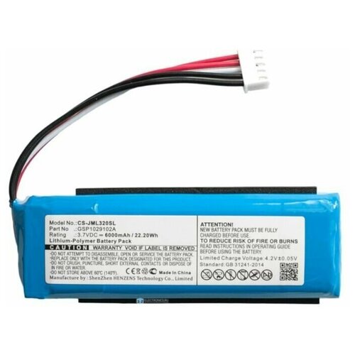 Аккумуляторная батарея (АКБ) CameronSino CS-JML320SL для беспроводной колонки JBL Charge 3 2016 года, 6000мАч, 3.7В, 22.20Вт, Li-Pol