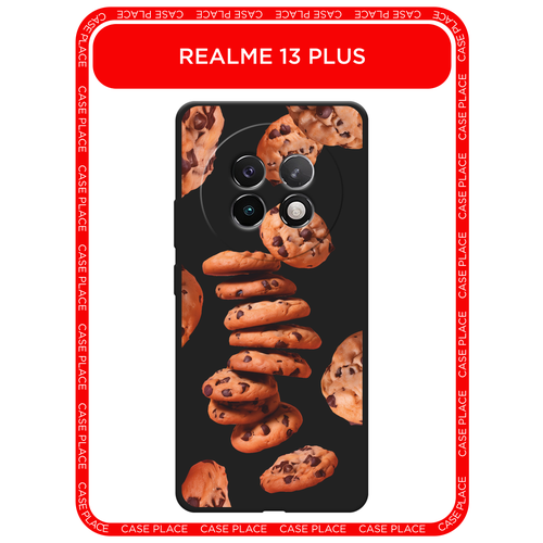Черный матовый чехол на Realme 13+ / Реалми 13+ с принтом world of cookies