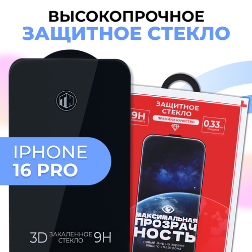 Защитное стекло, противоударное бронестекло 9H для iPhone 16 Pro / Закаленное глянцевое стекло на Айфон 16 Про