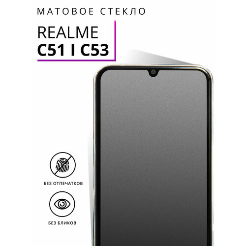 Защитное стекло Матовое для Realme C51, C53 / Олеофобное противоударное, закаленное стекло на Реалми С51, С53
