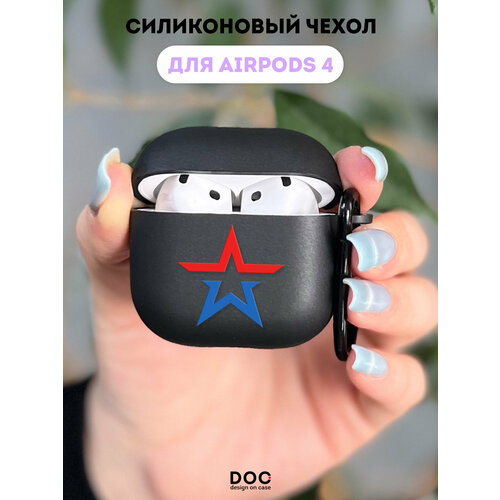 Силиконовый чехол DesignOnCase для беспроводных наушников AirPods 4, с карабином, матовый, Звезда РФ
