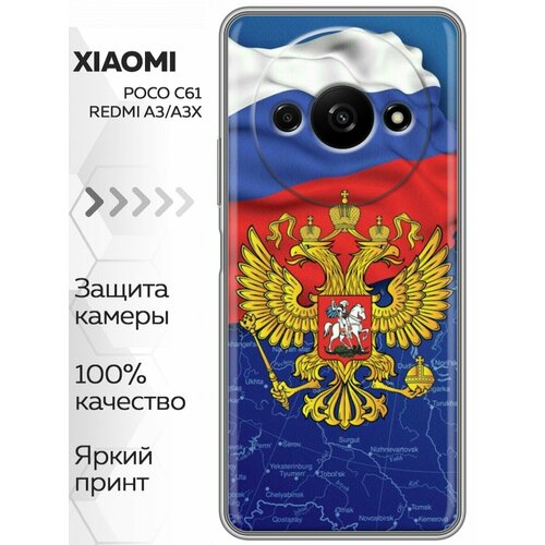 Чехол для Xiaomi Redmi A3, Poco C61, Redmi A3x для мужчин Герб и флаг России (Ксиоми Редми А3, Поко Ц61, Редми А3х)