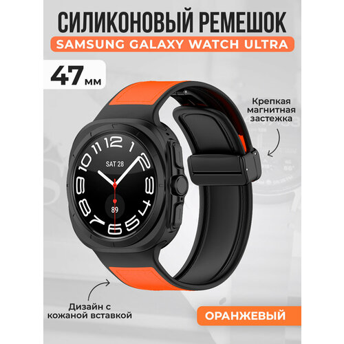 Силиконовый ремешок с кожаной вставкой и магнитной застежкой для Samsung Galaxy Watch Ultra, 47 мм