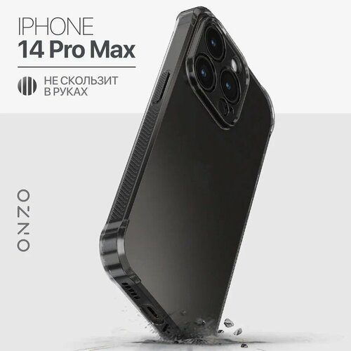 Чехол для iPhone 14 Pro Max с усиленными углами и с ребристыми гранями / Бампер на Айфон 14 Про Макс глянцевый, темно-прозрачный