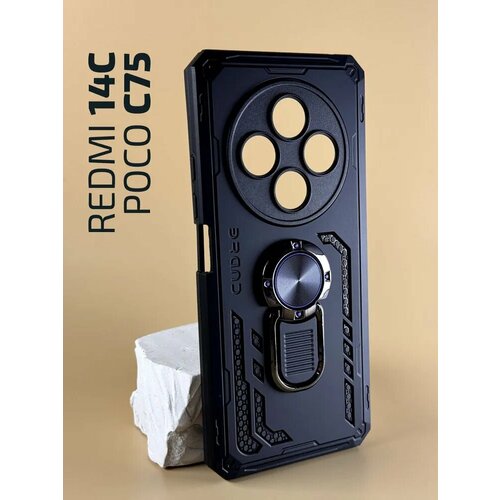 Чехол противоударный на Redmi 14C / Poco C75 (Чехол на Редми 14С / Поко С 75) с защитой камеры, ударопрочный, усиленный с кольцом