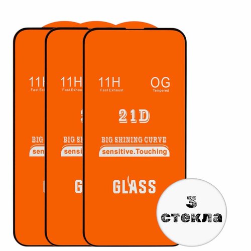 Защитное стекло, для iPhone 13 / 13 Pro / 14 / 16E с рамкой, комплект 3 шт