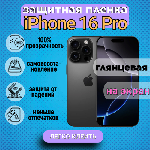 Гидрогелевая полиуретановая защитная пленка для iPhone 16 Pro, глянцевая