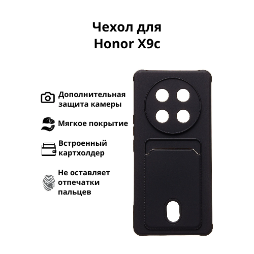 Чехол для Honor X9c с картхолдером матовый/ чехол силиконовый с картхолдером хонор х9с
