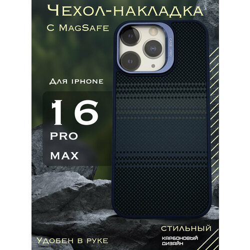 Чехол-накладка на Айфон 16 Pro Max c подставкой, ударопрочный, карбоновый, с поддержкой беспроводной зарядки MagSafe