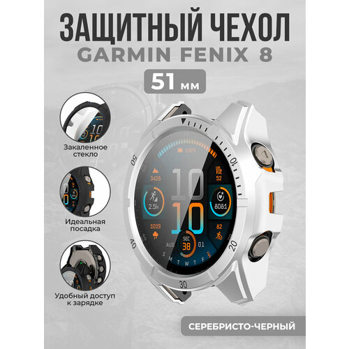 Защитный чехол-стекло для Garmin Fenix 8, 51 мм, серебристо-черный