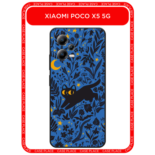 Черный матовый чехол на Xiaomi Poco X5 5G / Сяоми Поко X5 5G с принтом Ночной котик