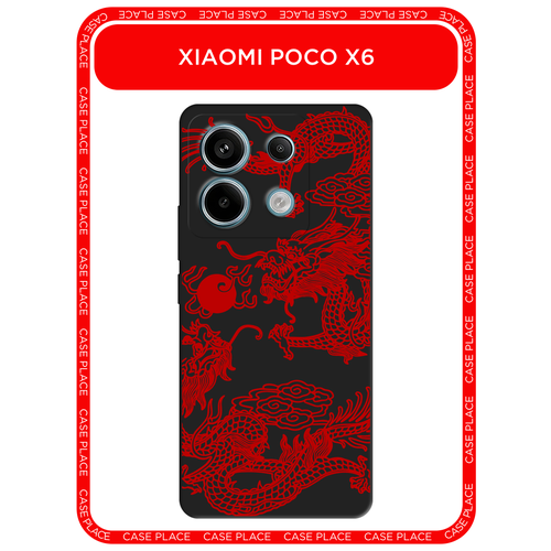 Черный матовый чехол на Poco X6/Redmi Note 13 Pro 5G / Поко Х6/Сяоми Редми Нот 13 Про 5G с принтом Красный азиатский дракон