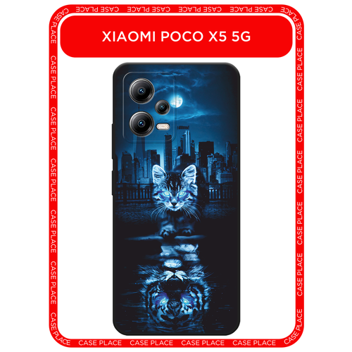Черный матовый чехол на Xiaomi Poco X5 5G / Сяоми Поко X5 5G с принтом В душе я тигр
