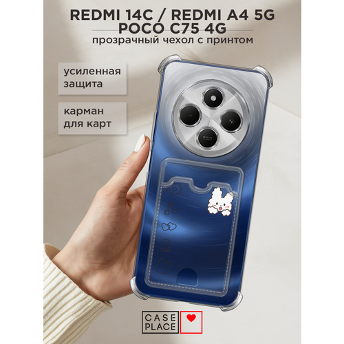 Чехол на Xiaomi Redmi 14C/Poco C75 4G/Redmi A4 5G/Poco M7 5G (Сяоми Редми 14C/Поко C75 4G/Редми А4 5G/Поко M7 5G) с картой и принтом Пушистый белый зайчик