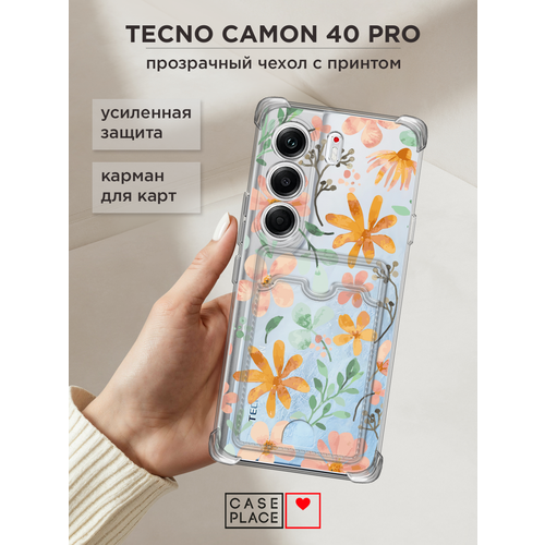 Чехол на Tecno Camon 40 Pro (Текно Камон 40 Про) с картой и принтом Цветочки и стебли
