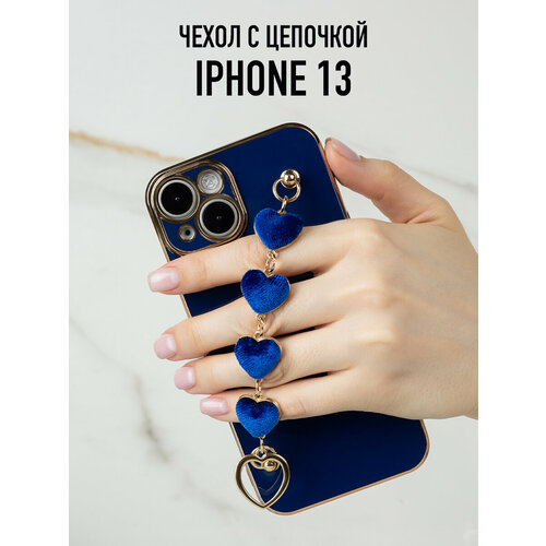 Глянцевый силиконовый чехол на iPhone 13 с цепочкой из сердечек