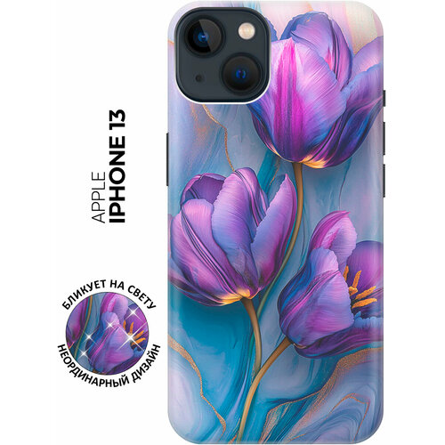 Силиконовый чехол на Apple iPhone 13 с принтом "Сиреневые тюльпаны"