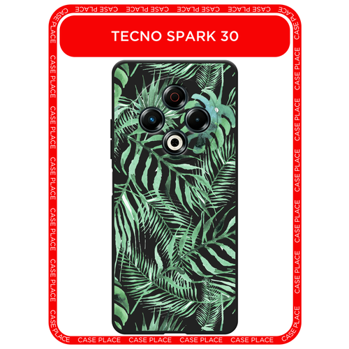 Черный матовый чехол на Tecno Spark 30 / Текно Спарк 30 с принтом Папоротник фон 2