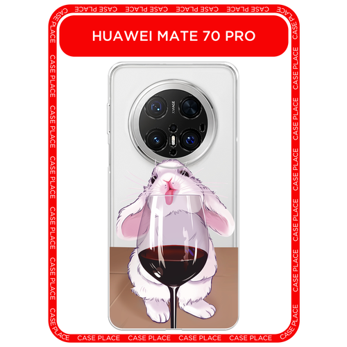 Чехол на Huawei Mate 70 Pro / Хуавей Мате 70 Про с принтом Кролик облизывает бокал, прозрачный